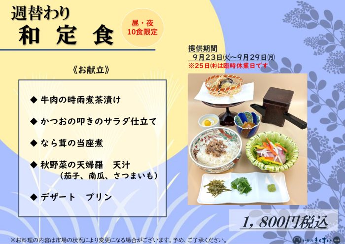 水曜日~月曜日まで提供の週替わり和定食🍽