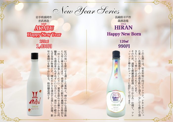 ※ヒランのニューイヤーボトルです。飲みやすいお酒のヒランですが、パーティーの高揚感を日本酒にしてみた感じです。