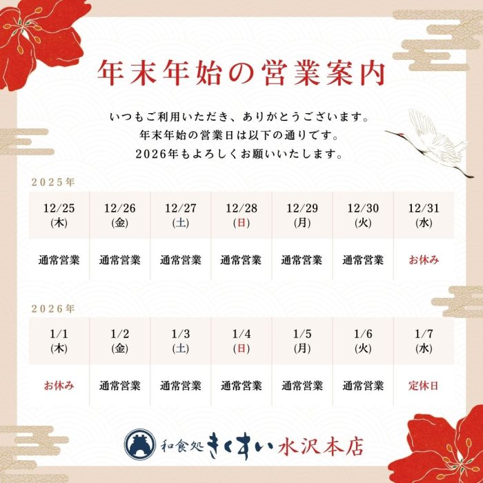 いつもきくすい水沢本店、ならびにきくすい北上店をご利用いただきまして誠にありがとうございます。