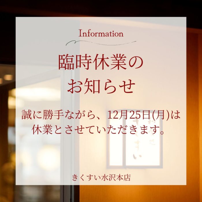 誠に勝手ながら12月25日木曜日は臨時休業とさせていただきます。